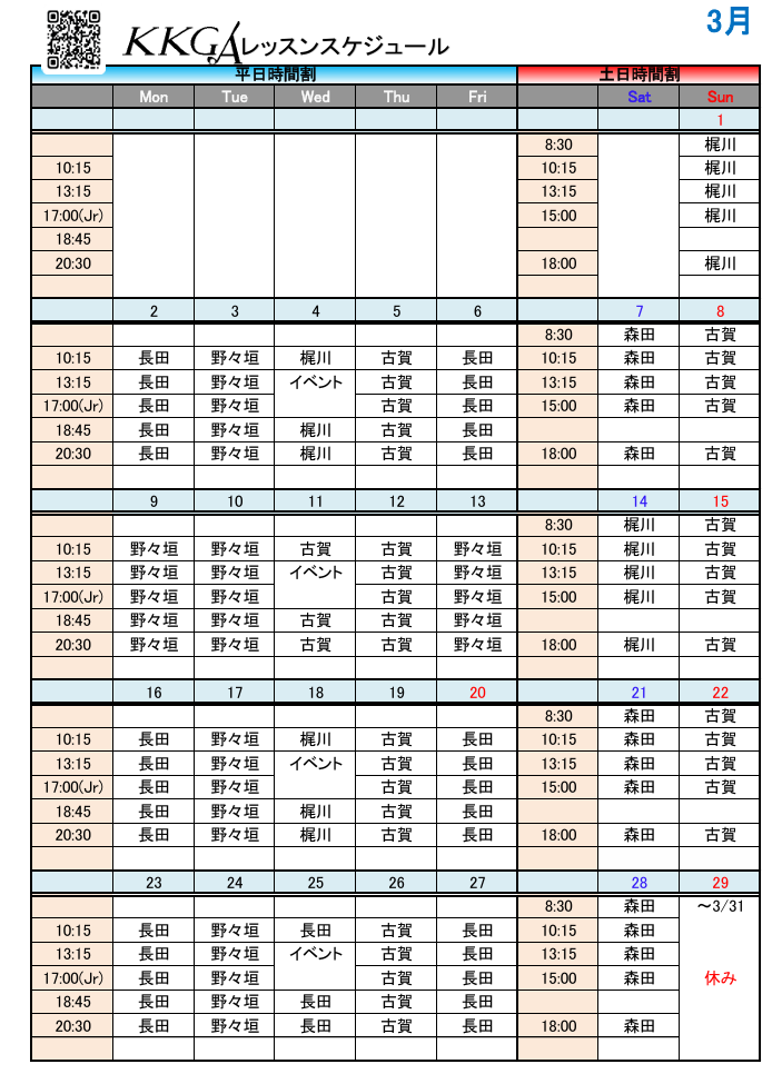2026年3月スケジュール